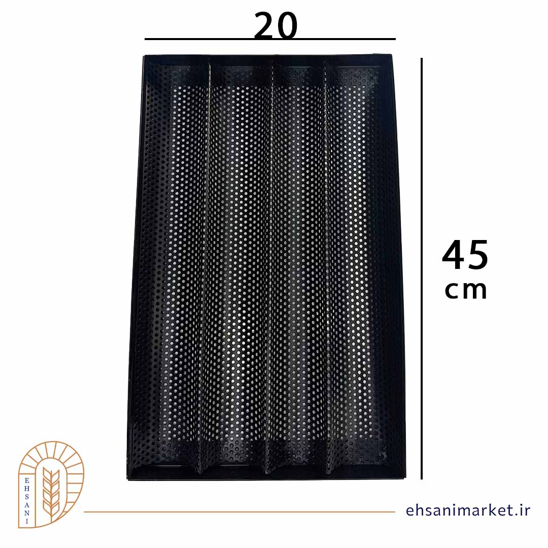 قالب باگت سوراخدار با ابعاد 25×40 سانتیمتر، انتخابی ایدهآل برای پخت نان باگت، نان فرانسوی و انواع نانهای حجیم است. طراحی سوراخدار در قسمت میانی قالب باعث گردش بهتر هوا و انتقال یکنواخت حرارت میشود که نتیجه آن پخت یکدست، بافت سبکتر و پوسته تردتر نان خواهد بود. این قالب برای استفاده خانگی و حرفهای کاملاً مناسب است.